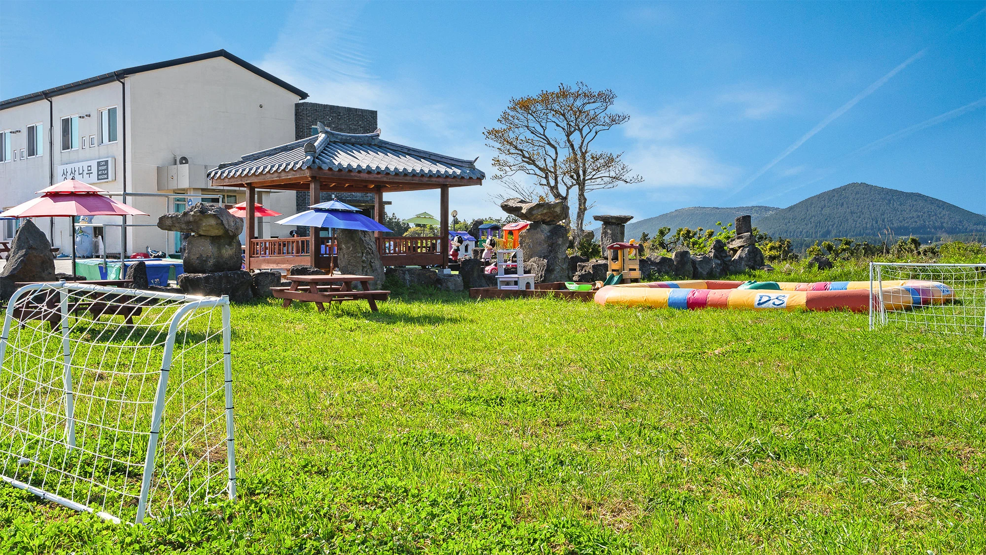 아이들이 마음껏 뛰어놀 수 있는 넓은 야외 놀이터